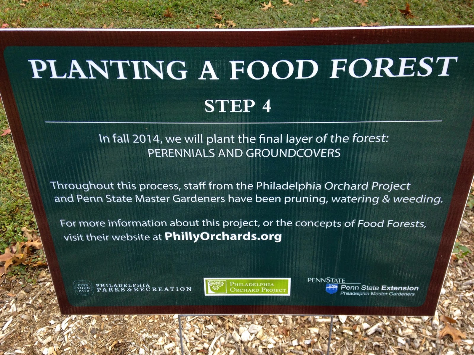 About a month ago, I was visiting the Shofuso Japanese house in Fairmount Park with my girlfriend when we stumbled upon a food forest right here in Philadelphia. I’ve read about several Philly Food Forest plantings done by the Philly Orchard Project, but hadn’t seen any yet. They had signs surrounding the site that described the process of installing the different aspects of the system. Well done, Philly Orchard Project! Check it out: