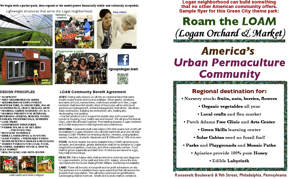 Paul Glover and the Land Health Institute are working on developing their own plan for the space. Kirtrina Baxter, a community organizer with the Garden Justice Legal Initiative at the Public Interest Law Center of Philadelphia, was one of the meeting’s attendees. She explains, “The LOAM project proposal, originally was a concept of Paul Glover’s with the community in mind. It allowed for community collaboration & input throughout. Paul has been actively working with the community to include what they would like to see in this project, therefore making it a more of a community effort. Over the past 30 years the Logan community has participated in various such proposals, though because of economic challenges, nothing has been realized.”