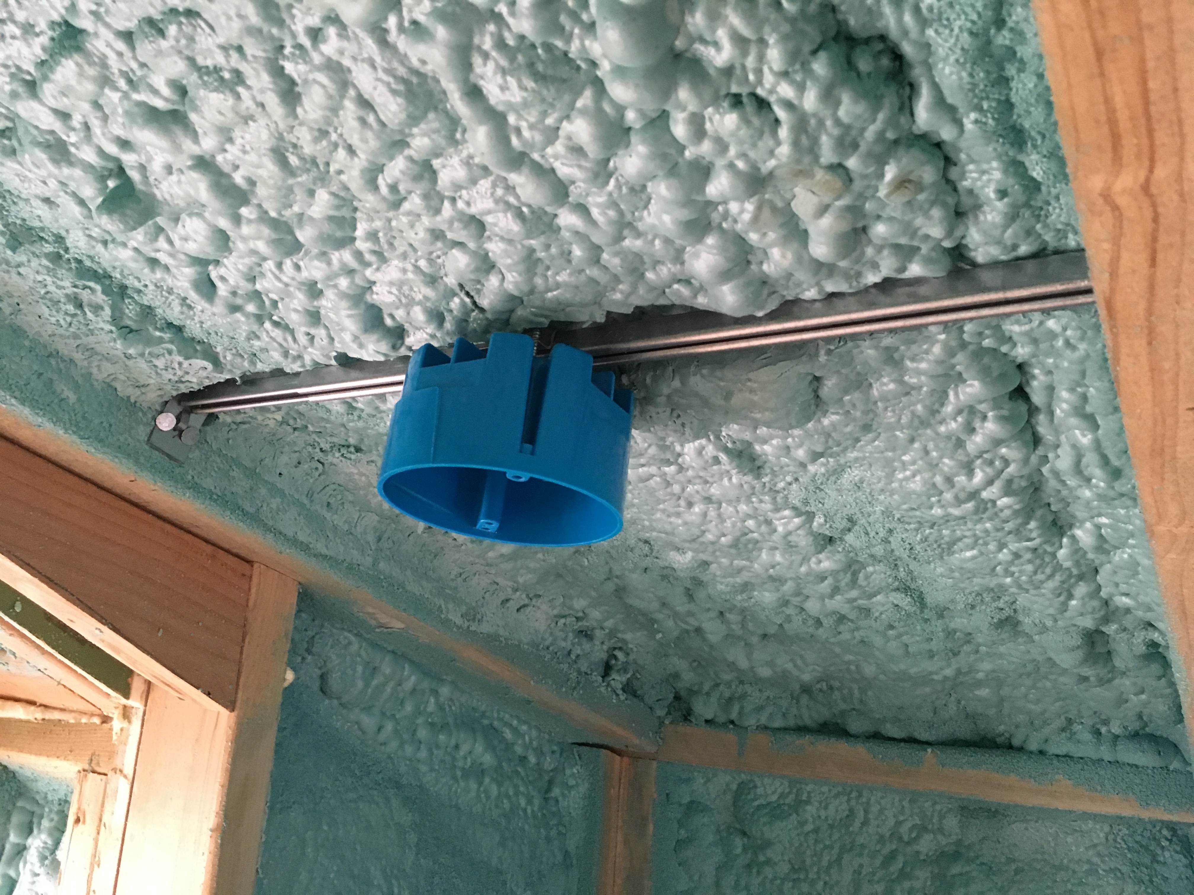 Stormwater management. We were under the 15,000 square foot threshold here that requires stormwater management, so everything that we’ve done, we’ve done voluntarily. So we have all the green roofs in the project, but even then, everything even after it drains out of the green roofs, it goes down, and we have 3 cisterns in the basement, and a whole rainwater recycling system, and it gets pumped back up. So, all these pipes that you can see are painted black and hidden around, they run all around so it runs an irrigation system up here, runs irrigation on the rest of the green roofs, re-fills the Koi ponds, it does all of the wash-down and stuff outside, all of our maintenance watering, cleaning sidewalks, cleaning the garage, all that stuff re-uses the rain water. So, we do a lot with the stormwater management and rain water recycling. Efficiency is huge. Everything we put in, we over-insulate. We require an R-factor of whatever is required by code plus 5%. We do all exposed spiral duct work, so any of the air leaking out of the ducts is already in the conditioned space. We use 98% efficient tankless water heaters, all EnergyStar appliances, EnergyStar lighting, recessed lights are EnergyStar, we use LED lights wherever we can, 95% efficient HVAC systems. So everything we do is really built from an efficiency position. Like, on a 90 degree day, you’ll go into a unit, and it’s 70 in the unit without the air on. Maybe the air is on for like 15 minutes in an hour, where in another house, the air would be on constantly. Everybody that’s lived here is pretty happy with the energy efficiency. Electric bills are low, gas bills are low.