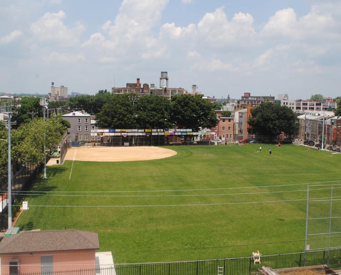 So the bar shuddered, and the guy owned the bar and like 3 houses down. So he closed up the bar, and shuddered his house, and the next one fell into disrepair, and they shuddered it. So it was 140 feet, where you see the end of Phase 1 now, and it was just shuddered buildings. On the corner was Dooley’s Ice House. And back in the day, this field was all intermurals and leagues. This was, demographically, a Caucasian blue-collar neighborhood. And supposedly, the story was that they field went 7 days a week after work. They played softball, football, baseball, any type of intramural or league sports. The field was packed every night. They drank on the field, they’d come over to Dooley’s Ice House, get six packs to take out, and go back over to the field. You know, guys are coming in to play sports, and get their beer at the bar, and some guys were drinking at the bar, and some were taking it back to the field. And it was back and forth, back and forth.